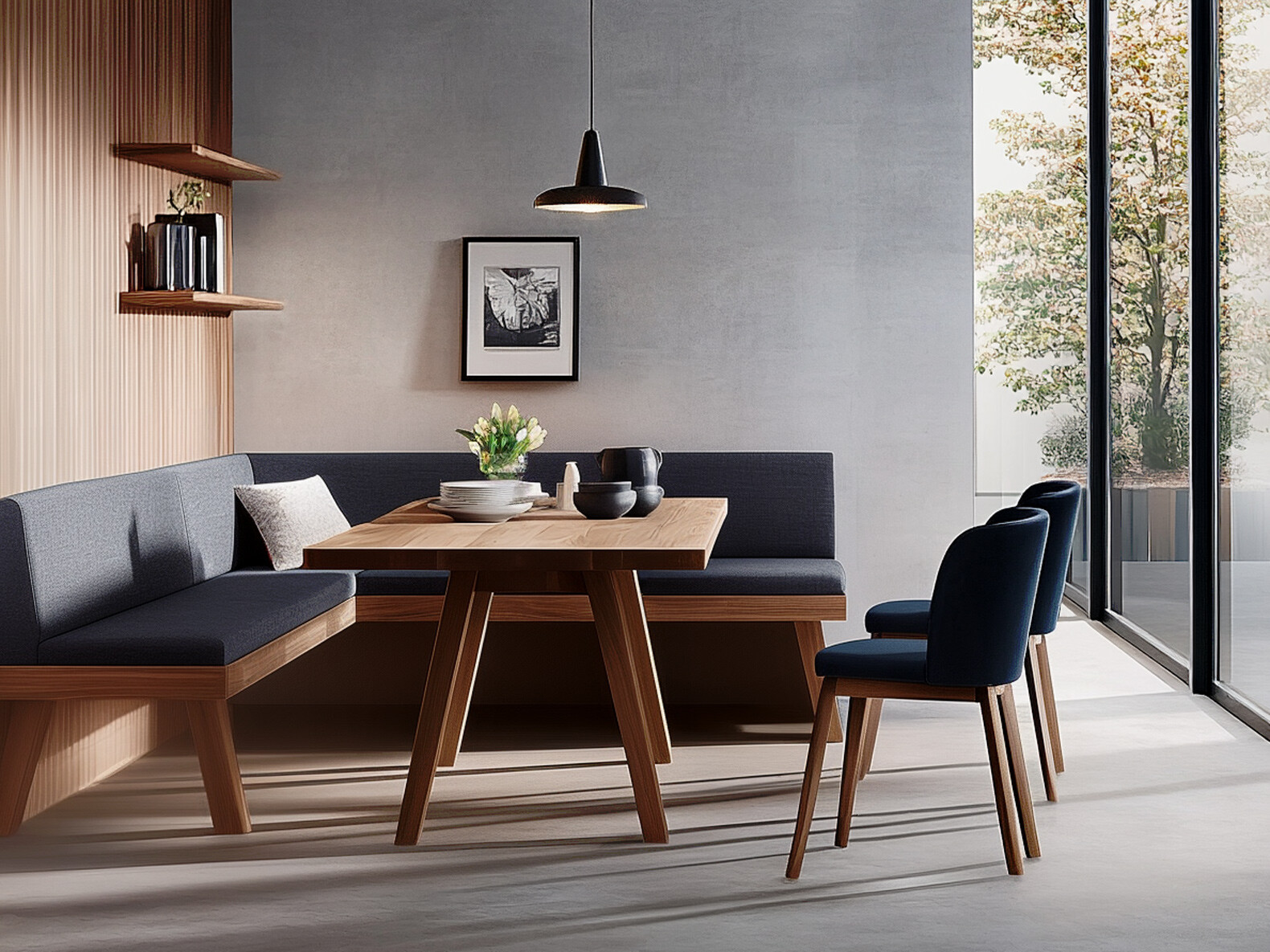 Für eine Küche mit integriertem Essbereich gibt es kaum etwas Gemütlicheres als einen Tisch mit einer maßgefertigten Eckbank, an dem die Familie zusammenkommt. Eine Eckbankgruppe spart Platz, bietet viel Sitzfläche und sieht einfach genial aus. Besonders in kleineren Räumen ist eine maßgeschneiderte Eckbank die perfekte Kombination aus Funktionalität und Stil. Passende Stühle und eine bequeme Polsterung runden das Gesamtbild ab und werden dich und deine Gäste begeistern. Bei uns erhältst du keine Möbel von der Stange, sondern individuelles Handwerk mit Liebe zum Detail. Lass dich persönlich beraten und finde deine Traum-Esszimmereinrichtung.