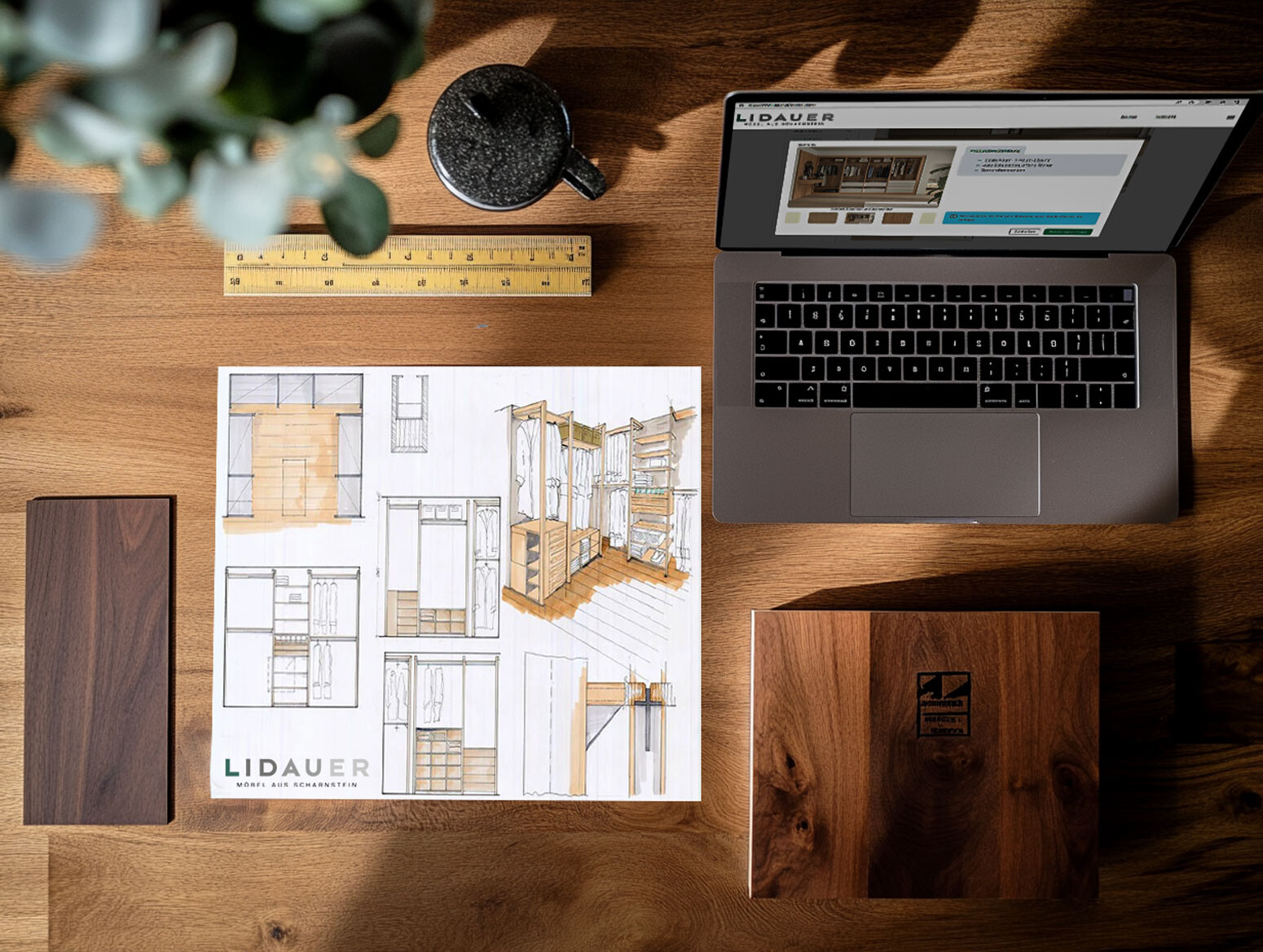 Mit unserem Online-Möbelplaner kannst du deinen Kleiderschrank so gestalten, wie du ihn brauchst. Wähle aus vorkonfigurierten Möbeln und passe Maße, Dekor und Innenleben einfach an – alles in wenigen Schritten. Für noch individuellere Traumschränke bietet unsere Korpusbibliothek die Möglichkeit, frei planbare Schränke zu gestalten. Gerne stehen wir dir auch persönlich zur Seite: Kontaktiere uns, und wir planen dein Möbelstück gemeinsam vor Ort. Der große Vorteil: Durch die Verwendung des Online-Möbelplaners sparen wir Planungskosten und können deinen Schrank direkt in unserer Tischlerei in Scharnstein produzieren. So bleibt der Preis attraktiv, ohne Kompromisse bei der Qualität. Gib uns einfach im Kontaktformular Bescheid, welches Möbel du mit unserem Möbelplaner konfigurieren möchtest – wir helfen dir gerne weiter!