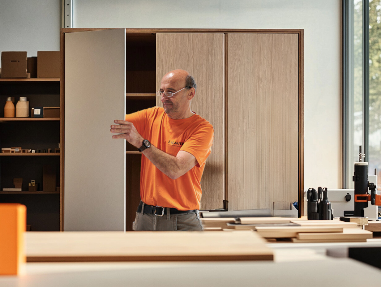 Unser Team begleitet dich durch den gesamten Prozess – von der Planung bis zur Fertigung. Jedes Schranksystem wird millimetergenau gefertigt, damit es sich passgenau in deinen Raum einfügt. Unsere Fachkräfte sorgen bei Bedarf für den professionellen Einbau, damit dein neues Möbelstück perfekt sitzt. Und das Beste: Die fachkundige Beratung ist für dich völlig kostenlos!