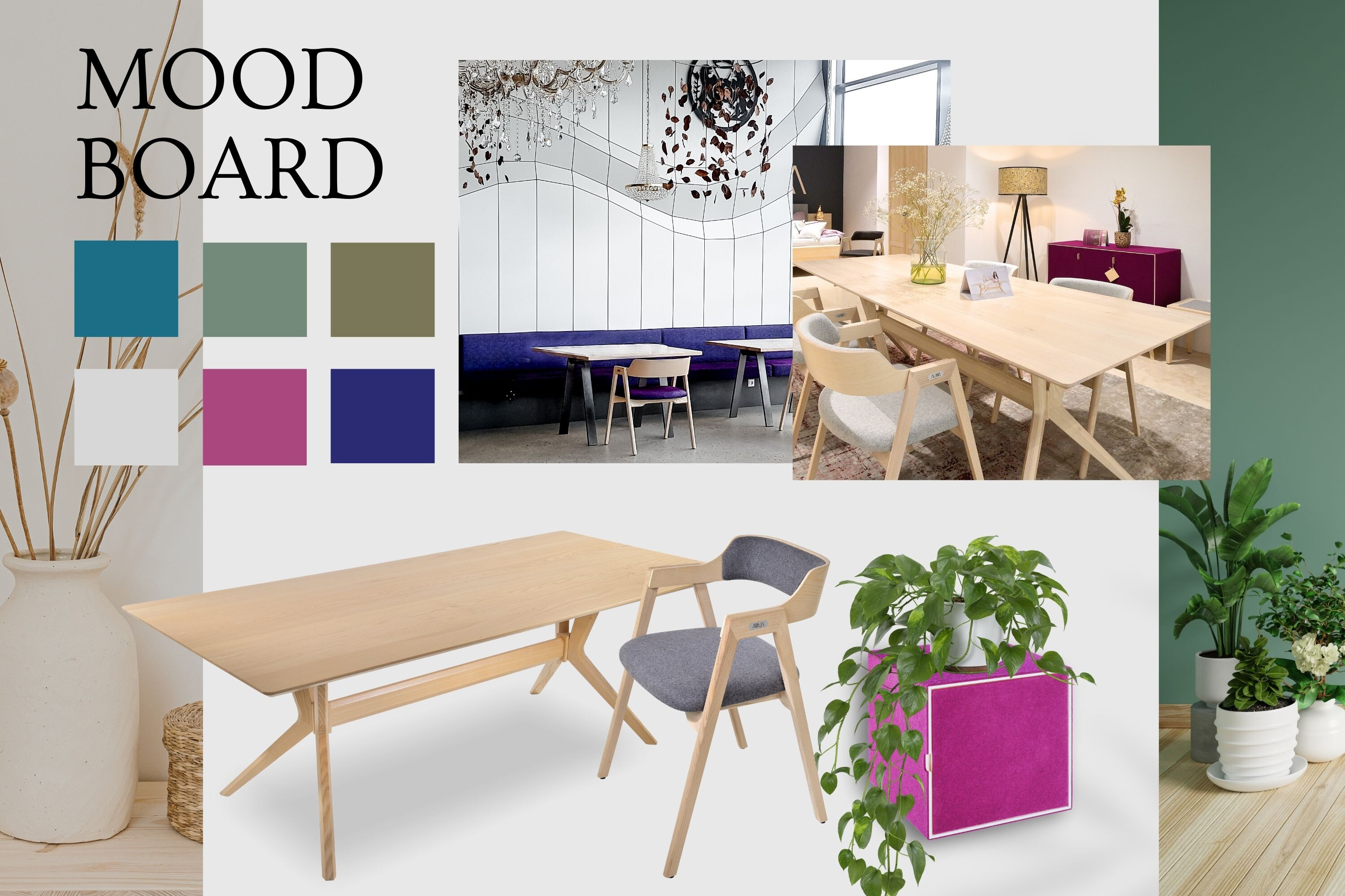 Esche besticht durch ihre helle, lebendige Farbe und eine markante Maserung, die jedem Raum eine frische, moderne Atmosphäre verleiht. Dieses Holz ist extrem widerstandsfähig und eignet sich daher perfekt für einen viel genutzten Esstisch. Eine Tischplatte aus Esche mit natürlichen Baumkanten bringt die Schönheit der Natur direkt in dein Esszimmer und schafft einen einzigartigen Blickfang. Farbkombinationen: Kombiniere Esche mit natürlichen Tönen, wie Steintöne, Pastellfarben und gedämpftes Grün und hellen Accessoires, um eine luftige, freundliche Atmosphäre zu schaffen. Kräftige Farben und Dunkle Töne, wie Beere, Magenta, Blau- und Petrol setzen spannende Kontraste.