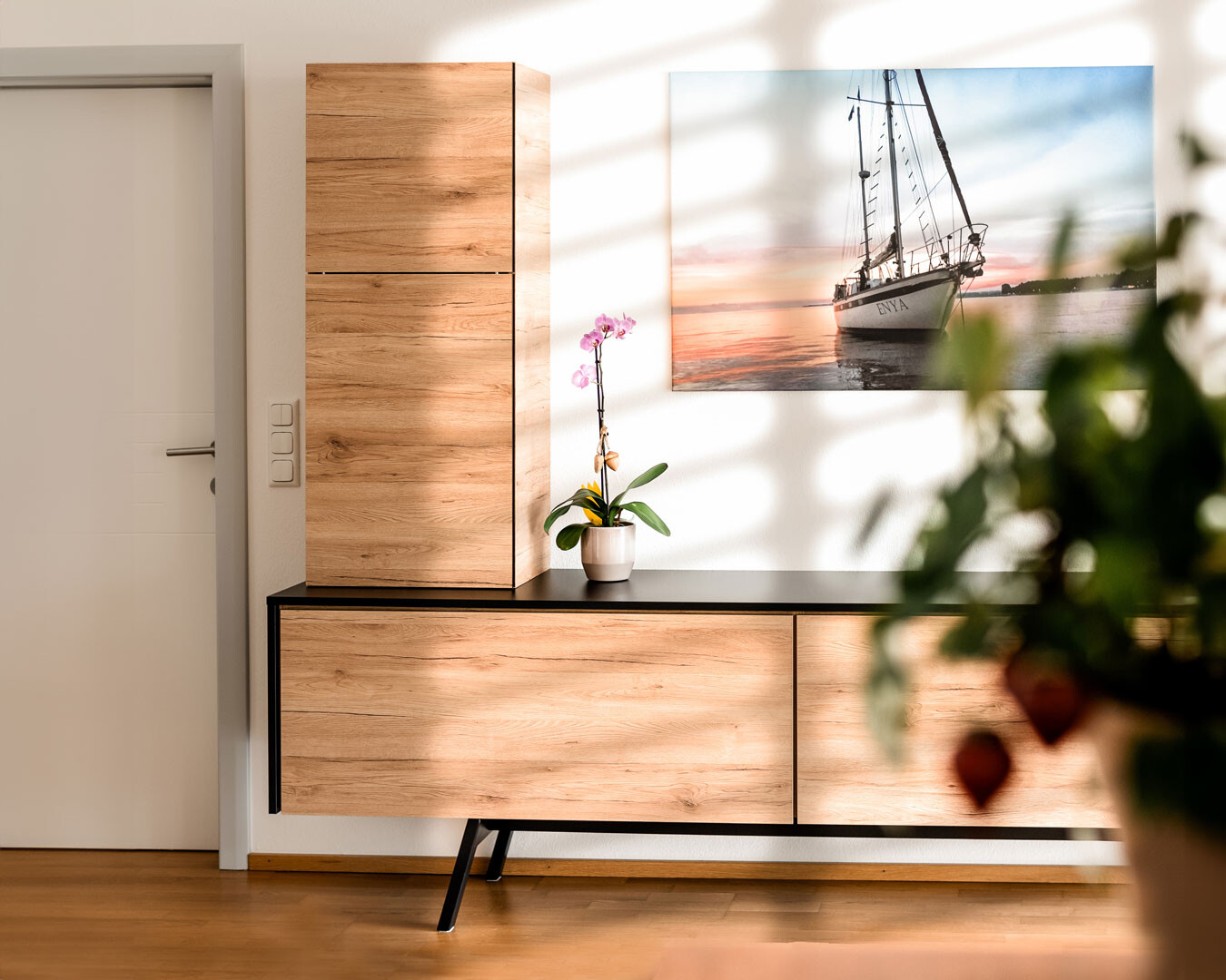 Sideboard: Bietet zusätzlichen Stauraum und kann als Ablagefläche für Getränke und Speisen dienen.