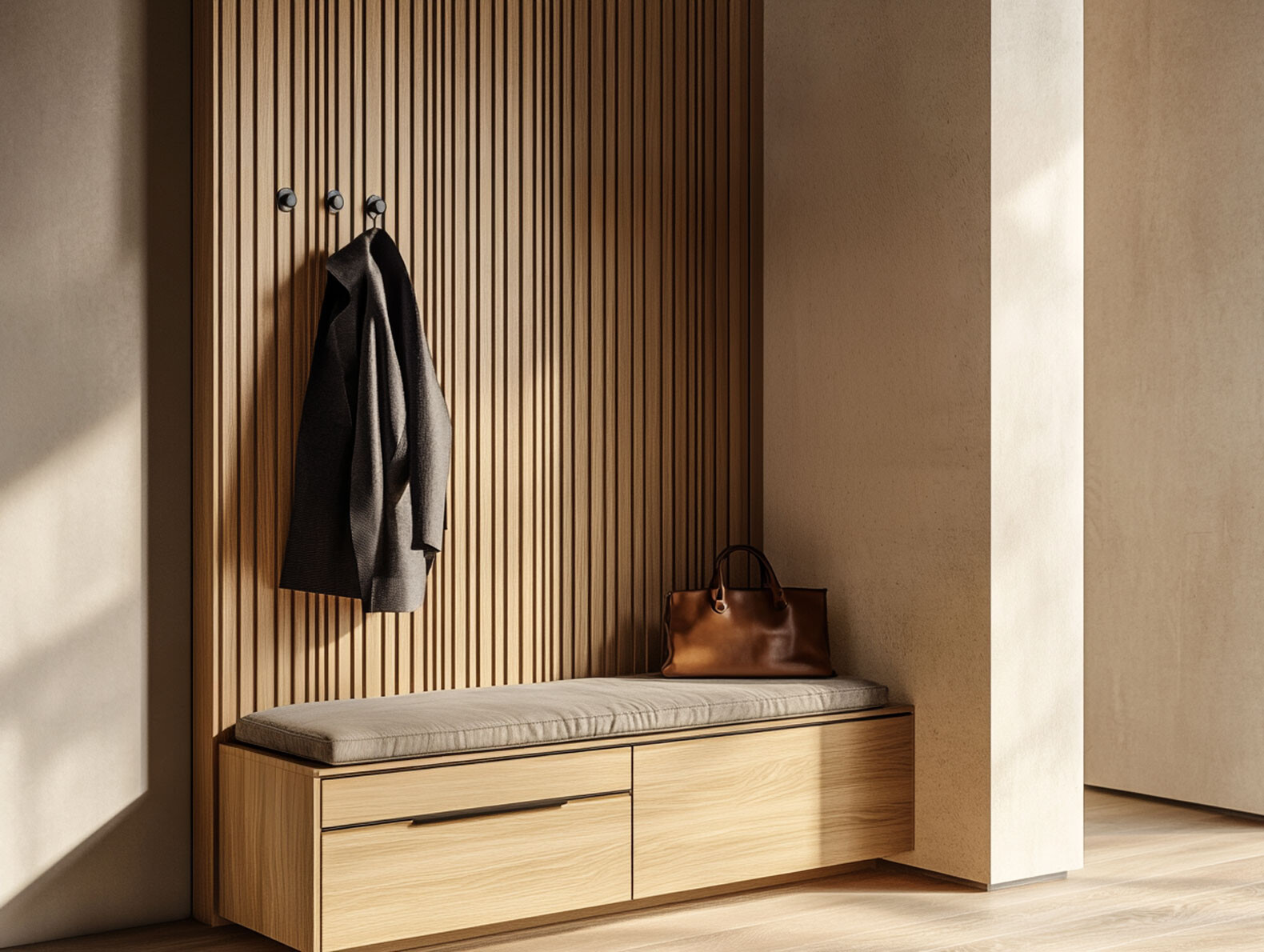 Sitzbank mit Schubkästen und Stauraum – funktional und gemütlich.